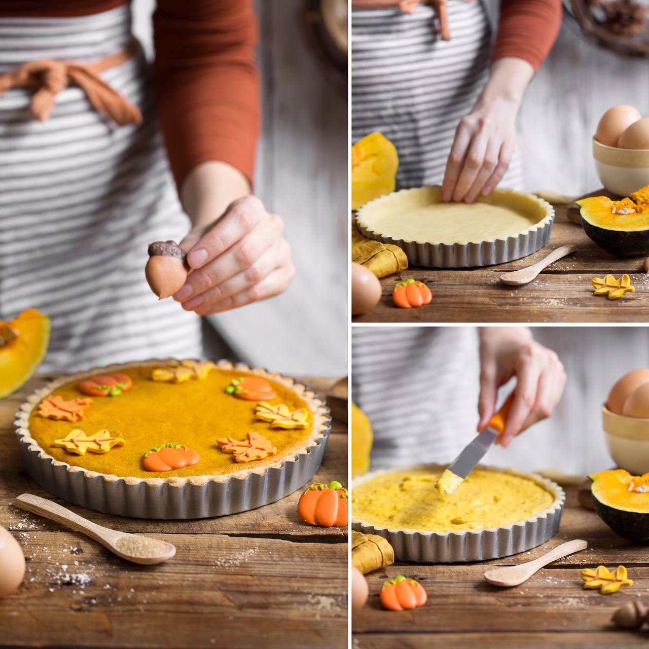 V našem bogatem asortimaju pekovskih izdelkov to sezono ne spreglejte prikupnega pekača z jesenskimi motivi: specite piškote v obliki listov in buč, s katerimi boste očarali svoje goste. Dajte si duška pri kreiranju muffinov – zakaj ne bi za spremembo za glavno sestavino v tej priljubljeni dobroti uporabili denimo kostanjev, muffine pa »oblekli« v papirčke, poslikane z listki, želodi… Popolna jesenska kombinacija! V kolikor bi radi svojim slaščicam dali jesenski pridih, pa imamo za vas ravno pravo sladkorno dekoracijo. Položite listke, buče in želode iz sladkorja na vašo kreacijo in voila – pita ali torta se spremenita v sezonsko poslastico, ob kateri se takoj pocedijo sline.