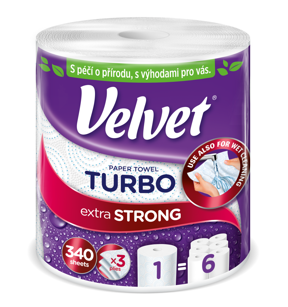 / Trgovina / POTROŠNI MATERIAL / PAPIRNATE BRISAČE IN PODAJALNIKI / Brisače Velvet turbo strong 340 l, zav