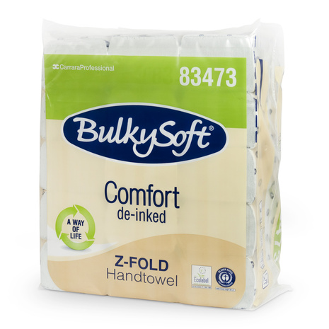 Papirnate brisače "Z" zložene, 2-slojne, bele barve, BulkySoft, v priročnem pakiranju z ročajem.