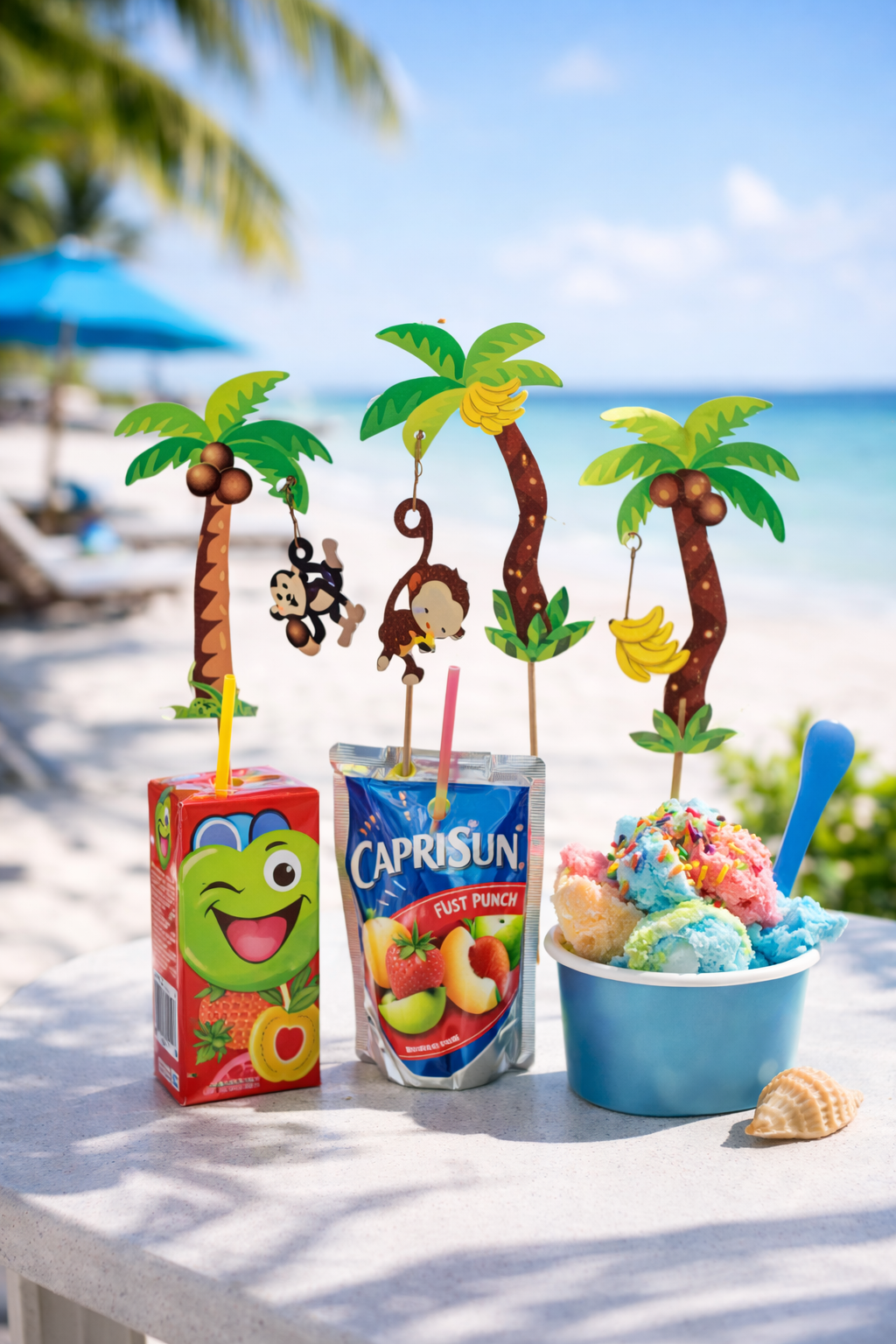 / Trgovina / EMBALAŽA / POSODICE, DEKORACIJA IN ŽLIČKE ZA SLADOLED / Dekorativne palme z opico, 100 kos v zavitku