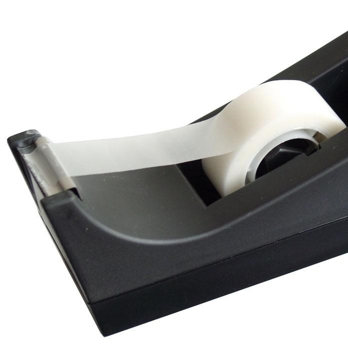 Držalo za lepilni trak ima odporno plastično konstrukcijo in nedrsečo podlago za upravljanje z eno roko. Primeren tako v pisarni, kot doma.