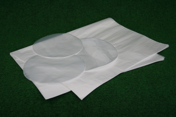 Izseki premera 13 cm, debeline 33 my, se uporabljajo za lažje ločevanje pleskavic. Izdelek ima potrdilo, da je primeren za stik z živili.