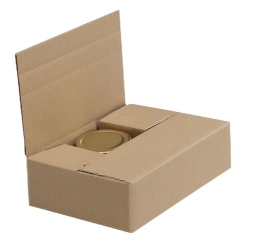 Kartonska škatla primerna za pakiranje večjih kozarcev. V notranjosti so pregibni zavihki, ki ločujejo kozarce med seboj, da se ne poškodujejo.