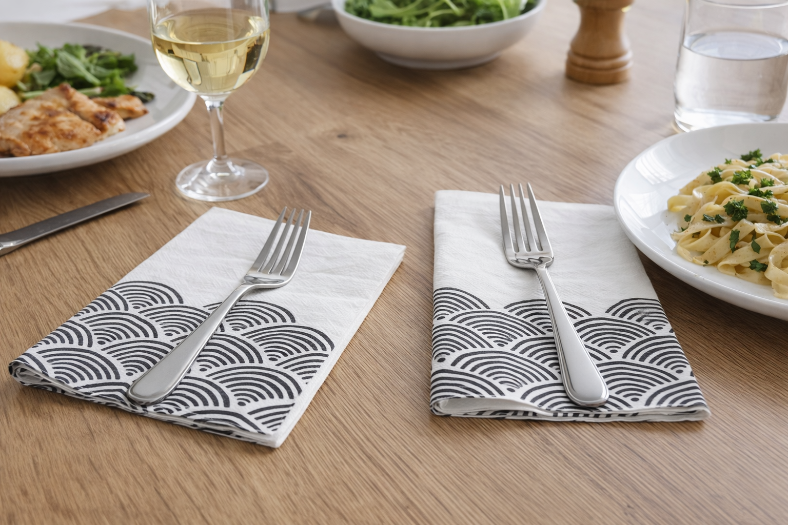 Servietke izbrane kakovosti so popolna zamenjava za tekstilne serviete. Posebej so primerni za zvijanje oziroma ustvarjanje struktur. Zaradi mehke strukture in atraktivnega potiska so prtički idealna izbira pri organizaciji pogostitev in praznovanj.