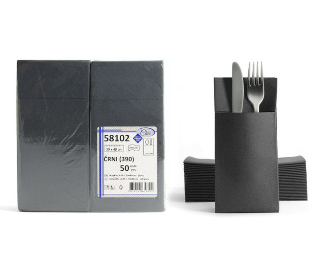 / Trgovina / Nekategorizirano / Serviete za pribor AIRLAID 39×40 cm, črne, 50 kosov