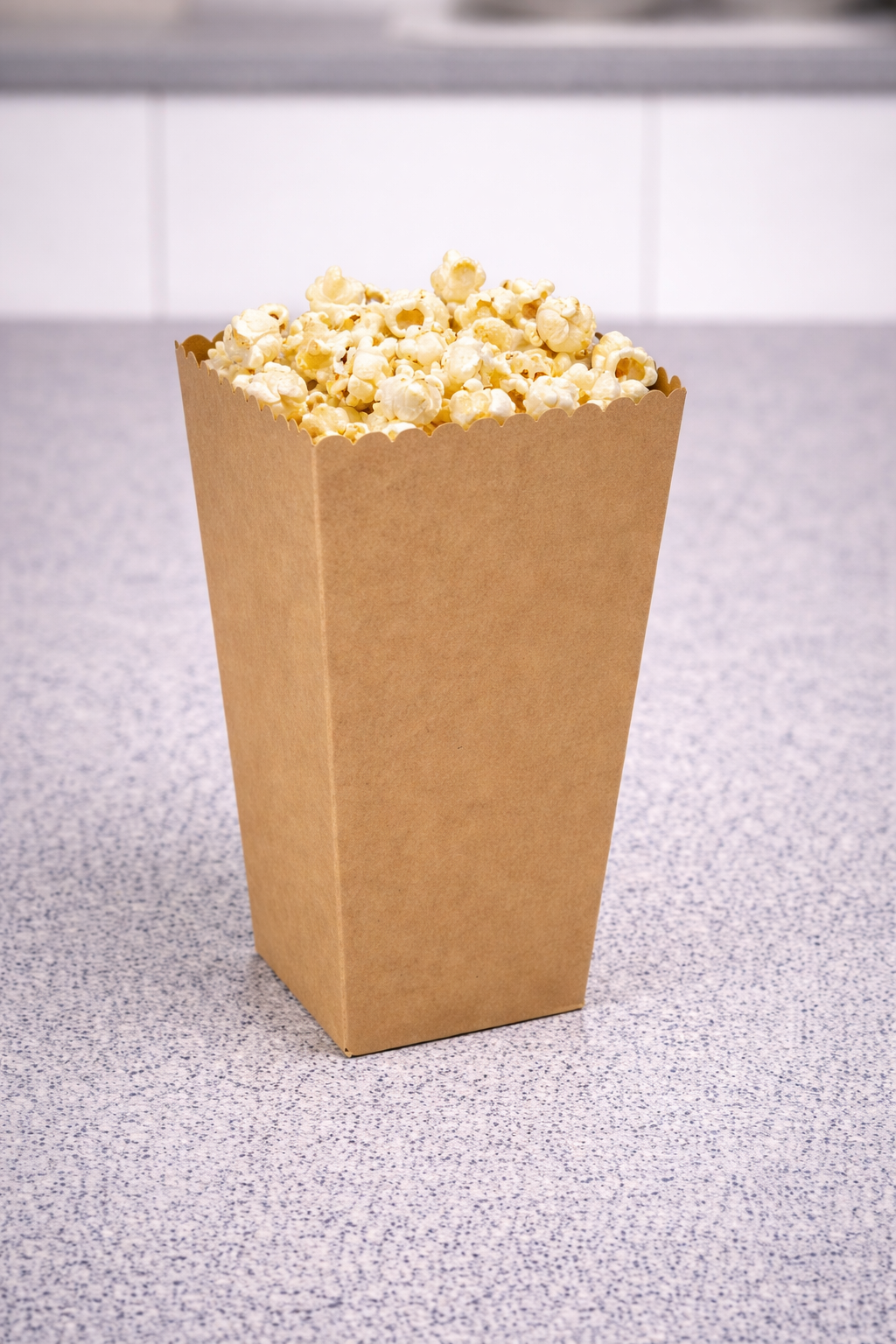 Škatla iz kartona se uporablja za lažje serviranje pečenega popcorna.